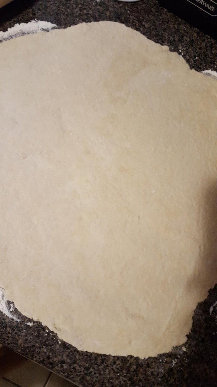Directions: combine all dry ingredients into a large mixing bowl then add pieces of butter and mix using a pastry cutter, butter will look crumbled when done cutting with pastry cutter. Add water into mix little at a time and mix in between each pour, your mixture will become doughy and will be sticky when enough water has been added. Time to knead the dough! Once soft and formed into a ball it’s time to roll it out for your pie! Be sure to add butter or a non stick spray to pan before placing rolled out dough into pan. Cut off excess dough around edges of your crust
